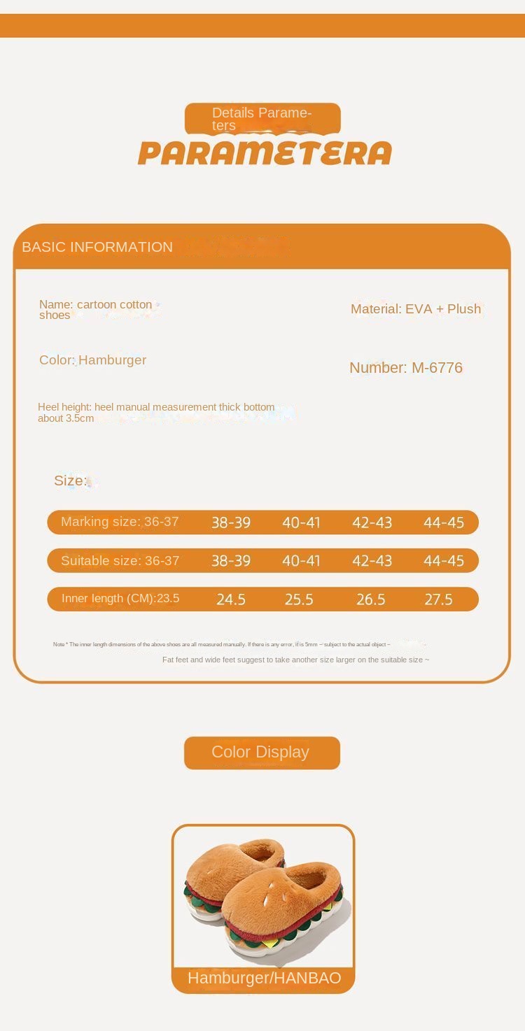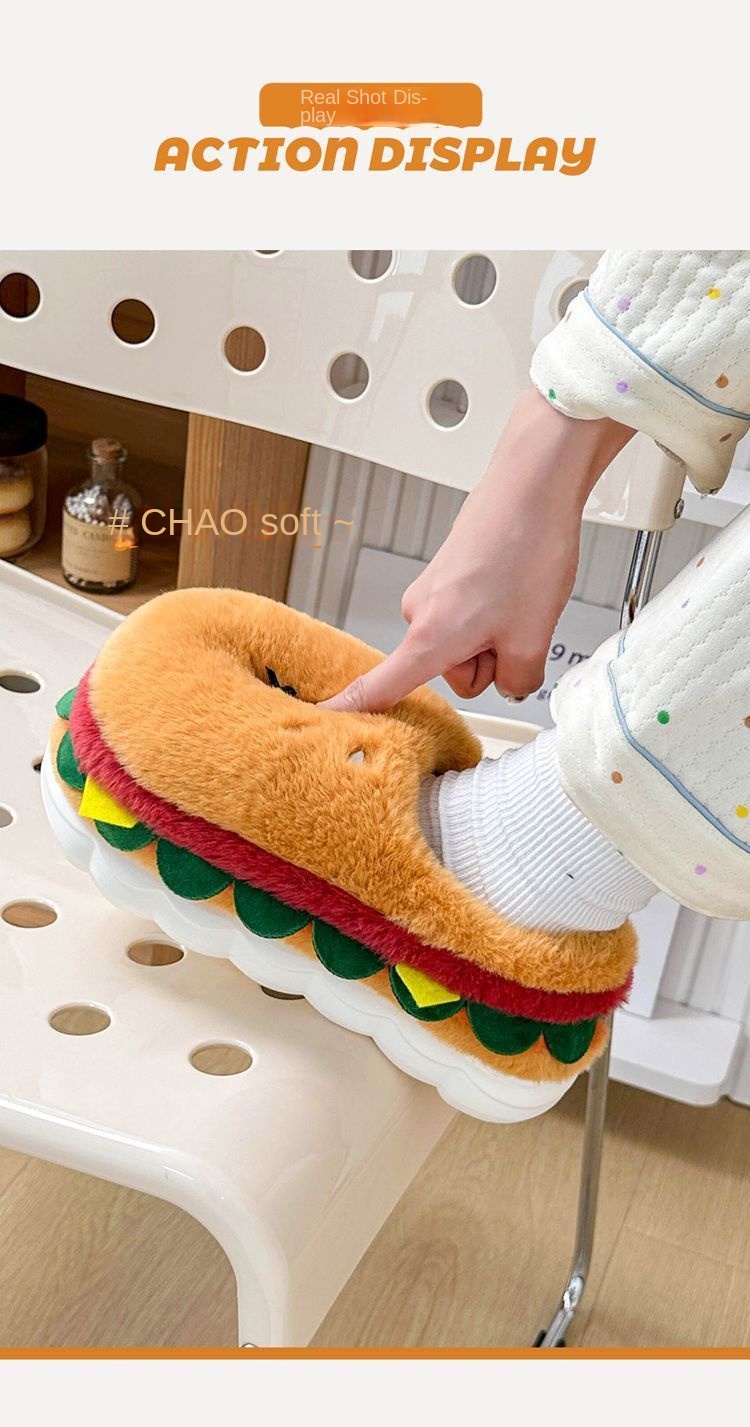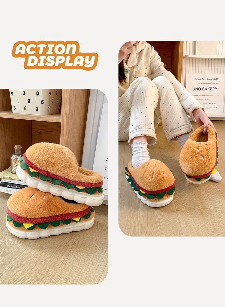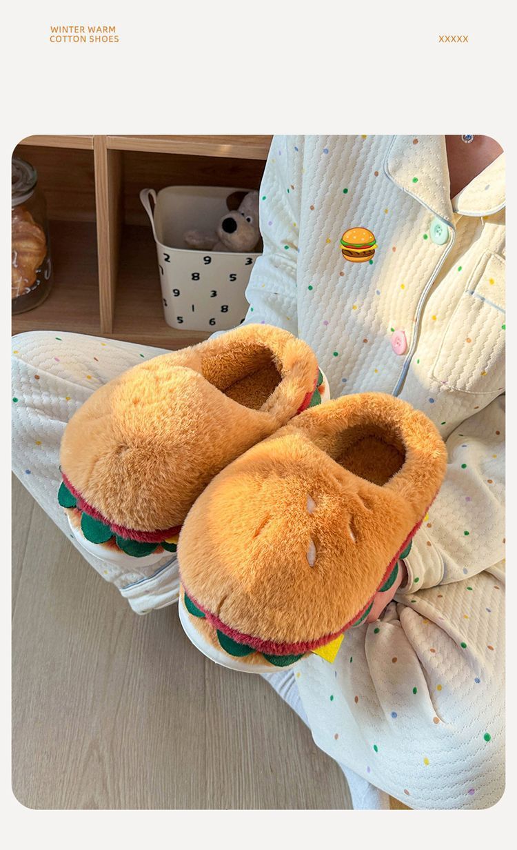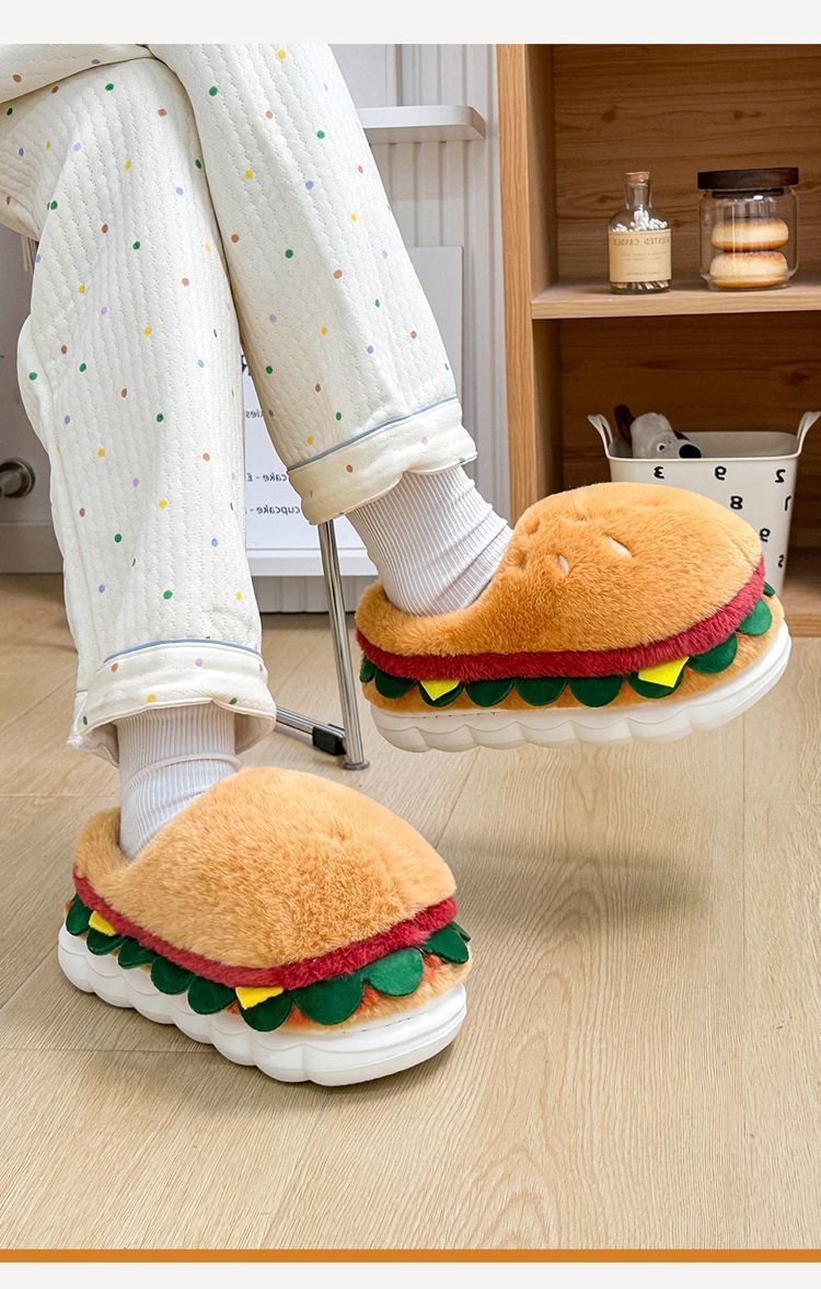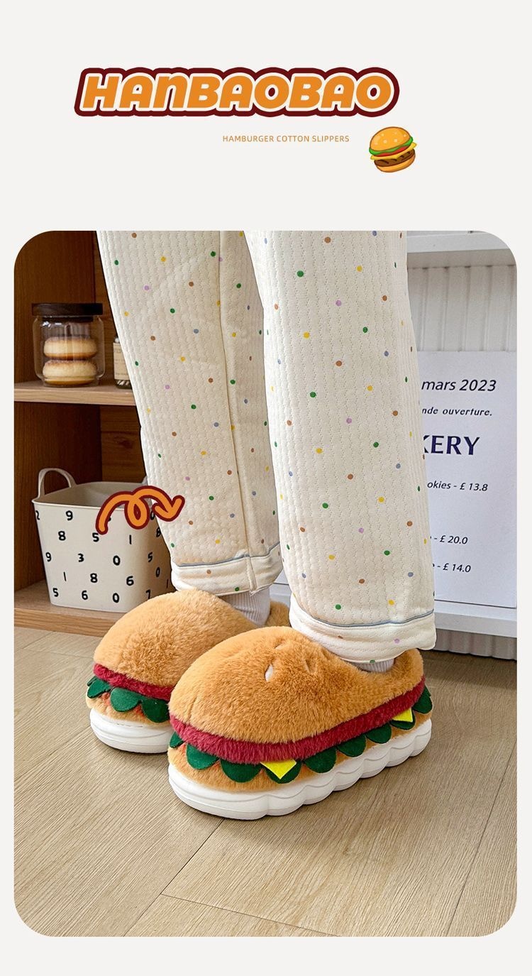 Ces pantoufles fantaisie en coton doublées de polaire allient un design ludique à un confort hivernal optimal. Leur intérieur moelleux vous garde bien au chaud pendant les mois froids, tandis que leur semelle antidérapante assure une stabilité parfaite à l'intérieur comme à l'extérieur. Conçues avec une semelle épaisse et souple pour un amorti confortable, elles se portent aussi bien à la maison qu'en extérieur. Leur adorable motif hamburger apporte une touche d'originalité à votre collection de chaussures d'hiver. Idéales pour celles et ceux qui recherchent des pantoufles confortables et fiables, sans compromis sur le style ni la fonctionnalité.