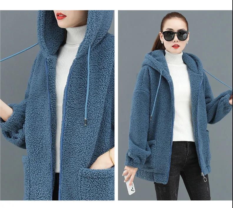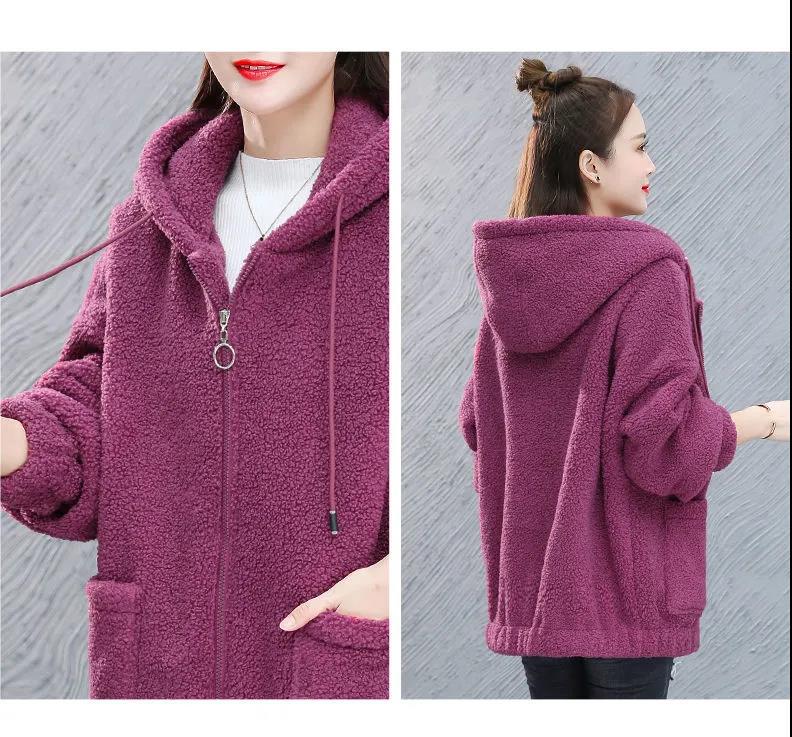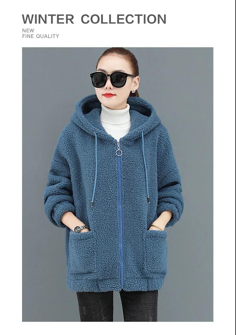 Sweat à capuche polaire femme épais et chaud automne hiver ample fermeture éclair style teddy