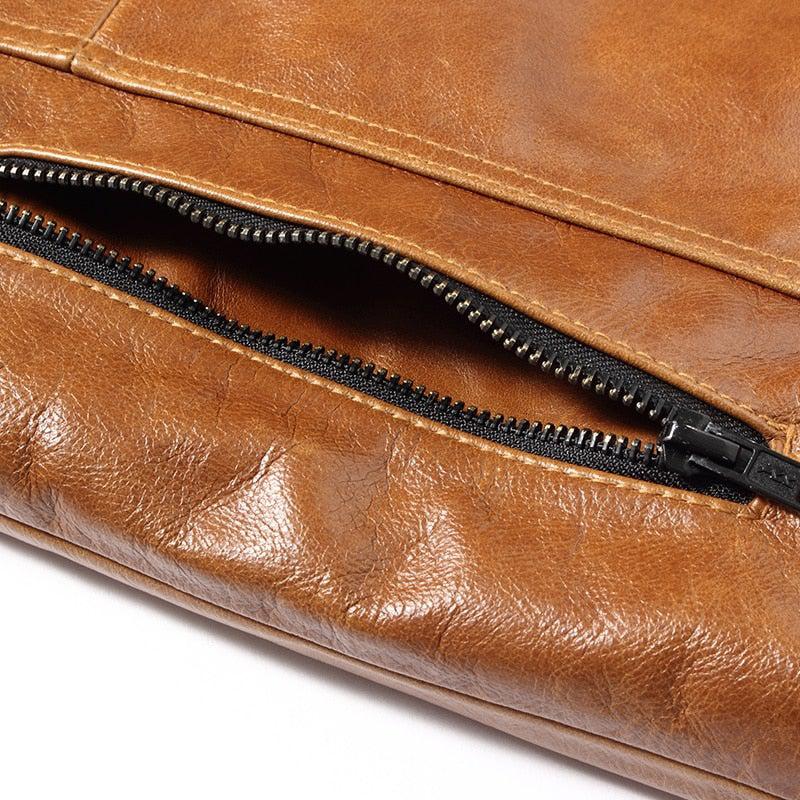 Veste streetwear en cuir véritable pour homme Hodor Tan