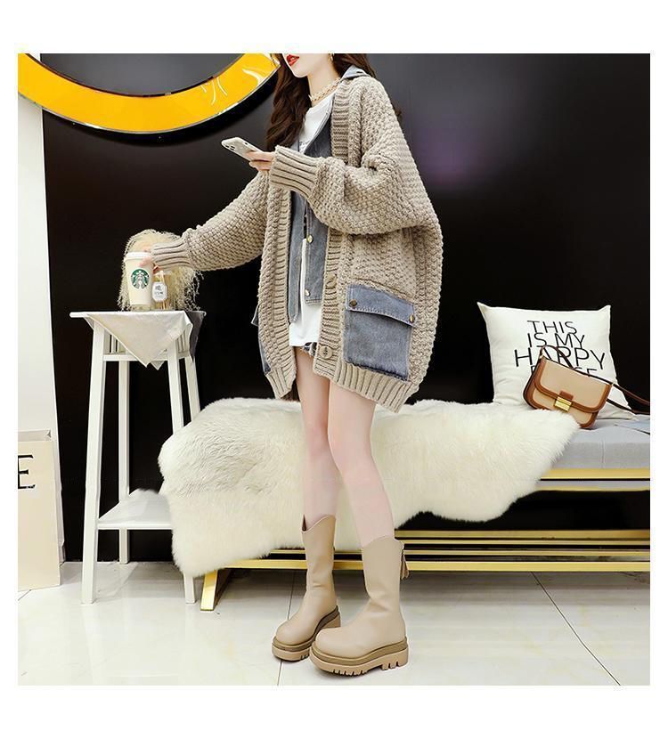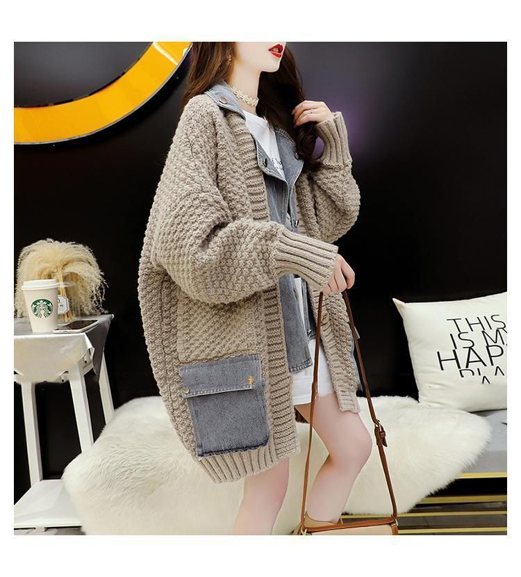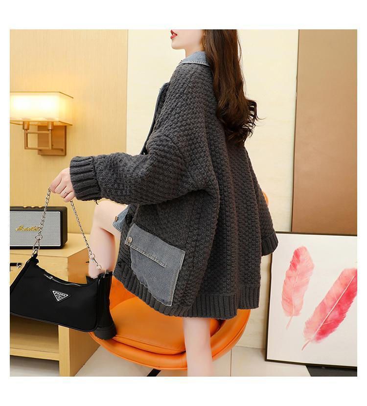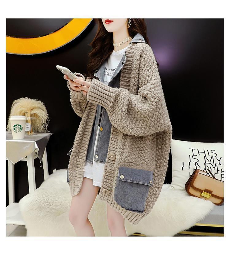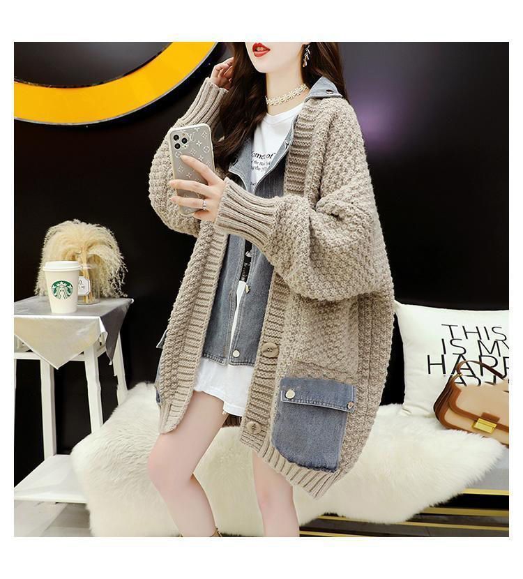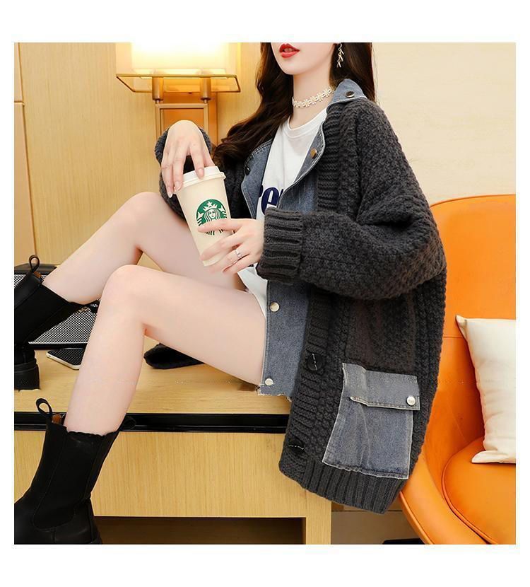 Casual Fake Two-Piece Design Loose Knit Sweater Cardigan