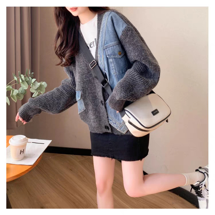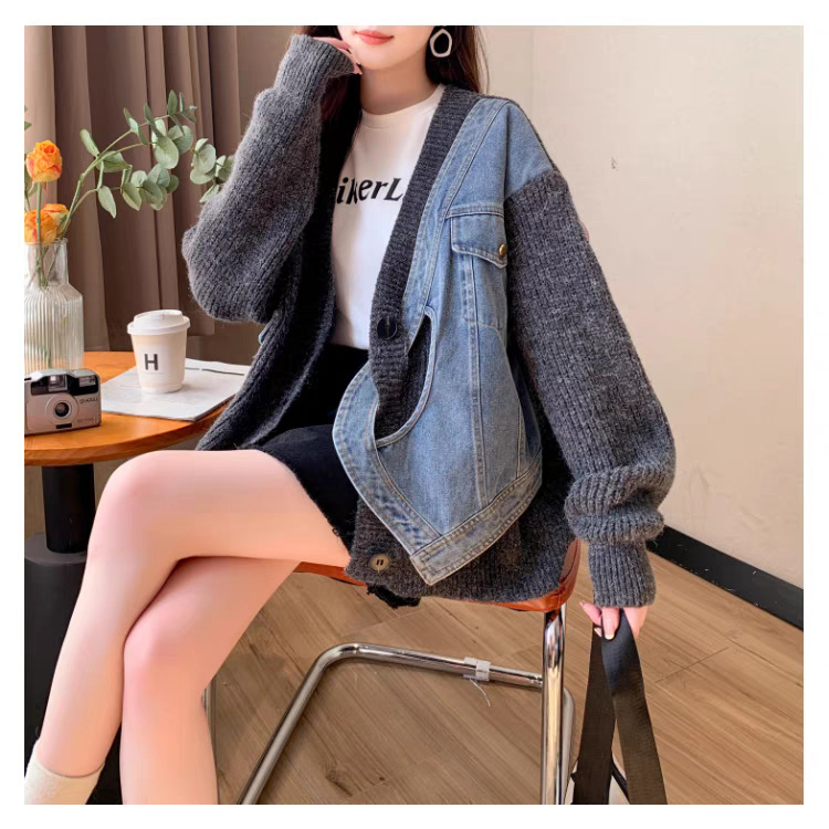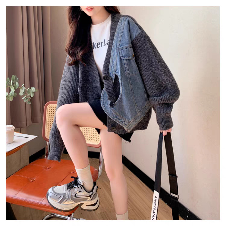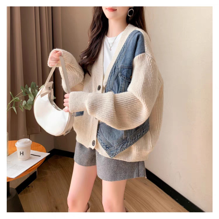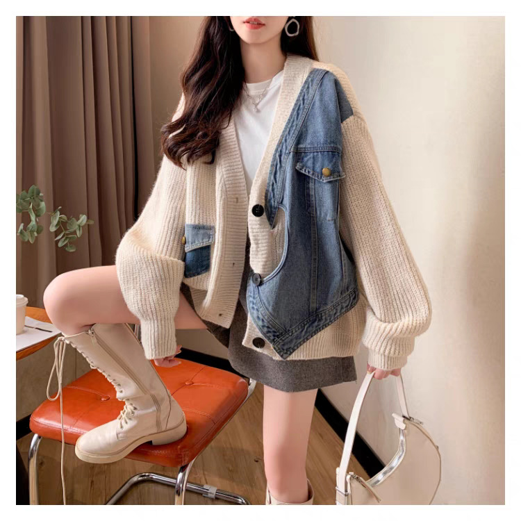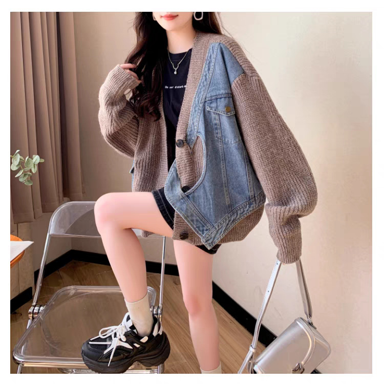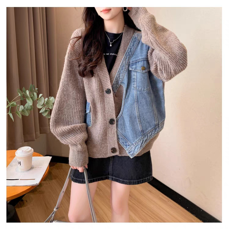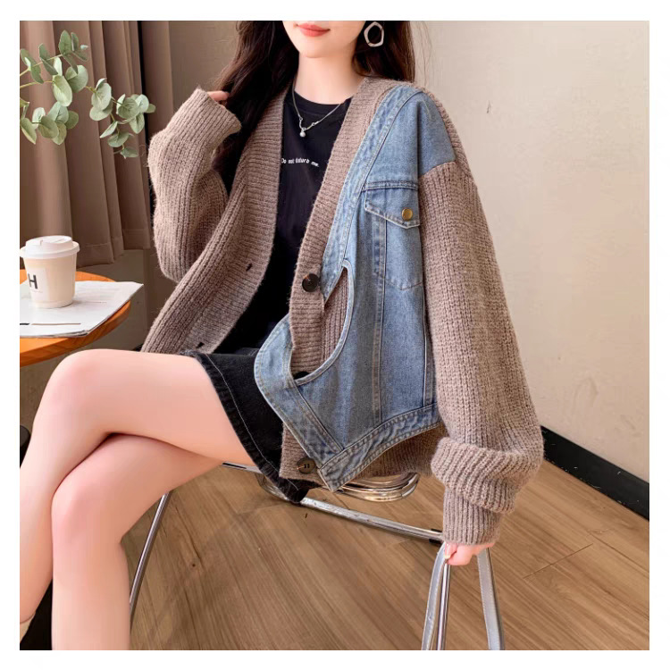 Designer-style Short Knit Denim Patchwork Cardigan for Women Elevate your casual wardrobe with this expertly crafted patchwork cardigan that merges classic denim with contemporary knit construction. The strategic color-blocking and mixed-texture design creates visual interest while maintaining versatile styling potential. Perfect layered over basics or worn as a standalone piece, this cardigan delivers both texture and dimension to everyday outfits. The structured fit flatters multiple silhouettes, making it a reliable choice for transitional seasons. Shop with confidence—we stand behind every purchase with a 7-day unconditional returns policy, so you can experience the quality firsthand risk-free.