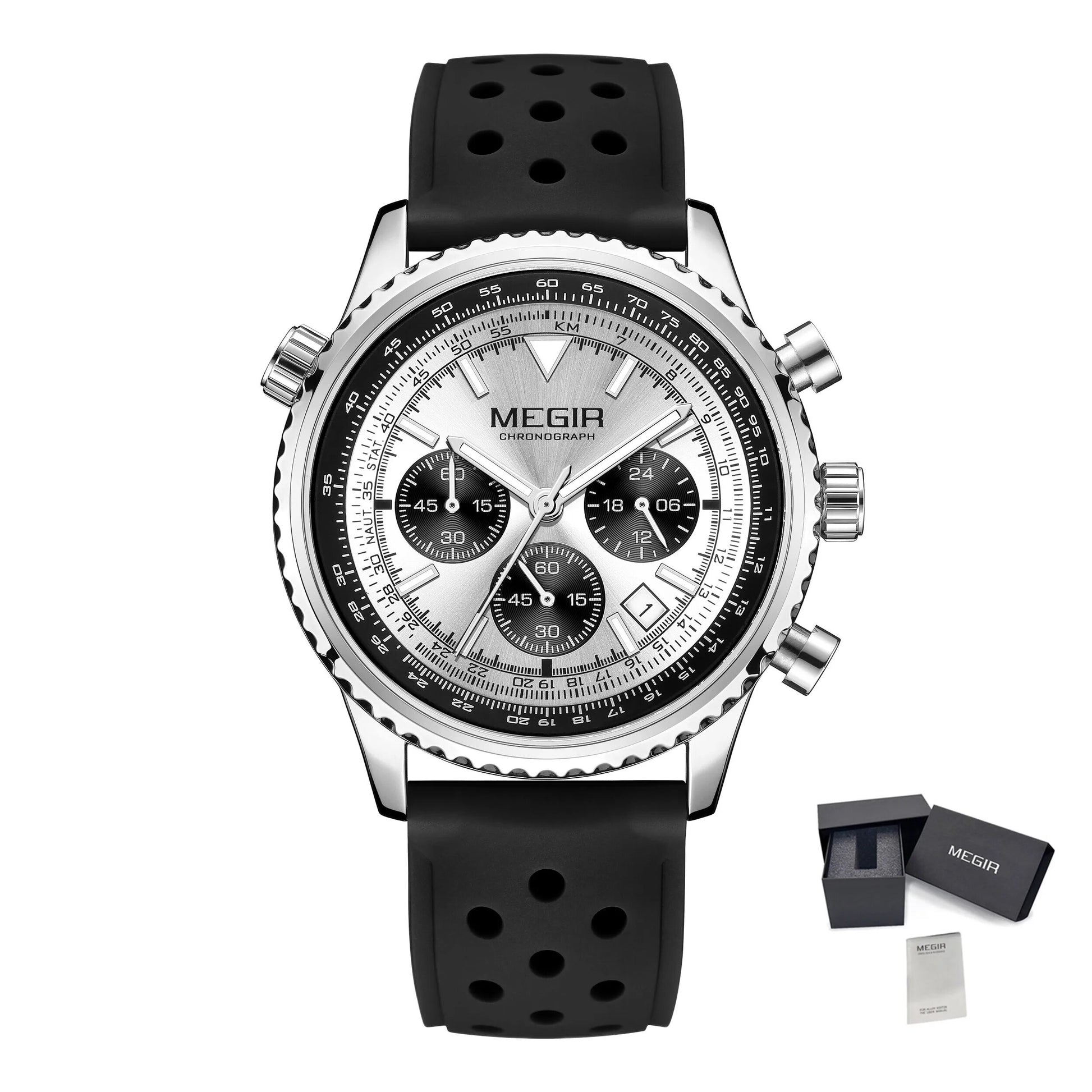 Luxury Men Watch with Silicone Strap Military Style Chronograph Waterproof 2236
