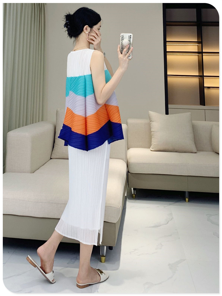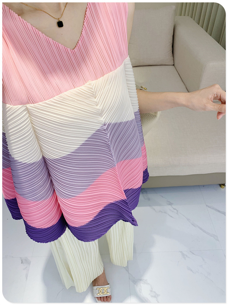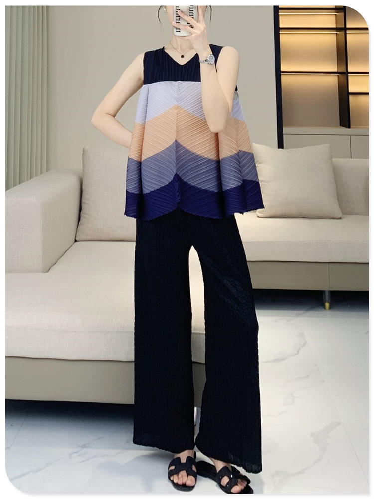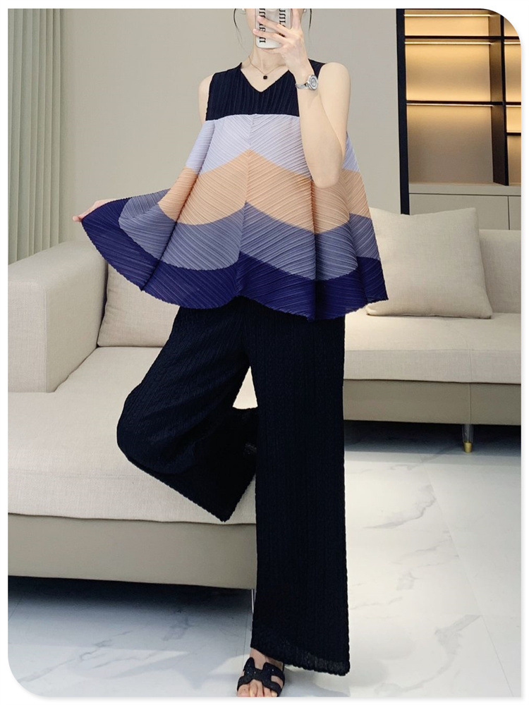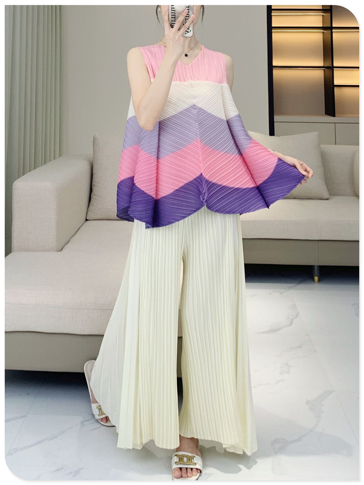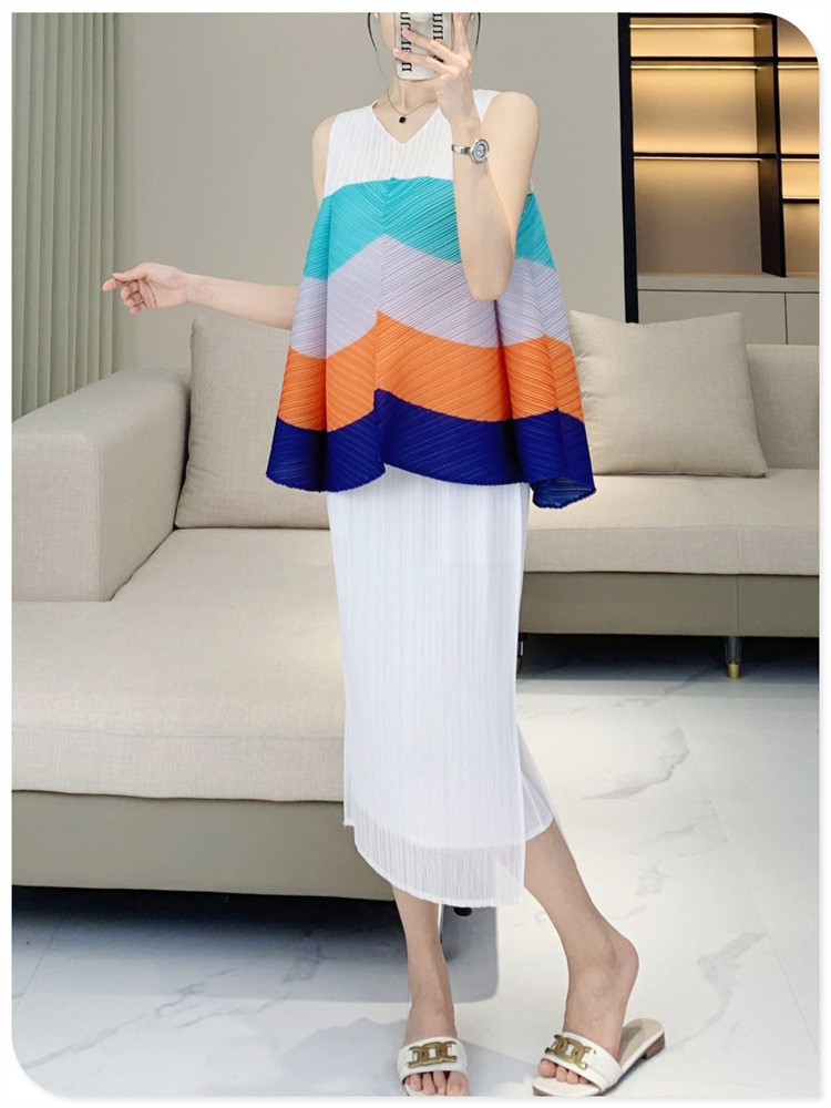 V-Neck Color Blocked Sleeveless Top This contemporary sleeveless top combines a flattering V-neck with strategic color blocking for modern visual interest. The loose, pleated silhouette offers a relaxed fit that works for multiple body types and styling preferences. Crafted for youthful, fashion-forward aesthetics, it transitions seamlessly from casual outings to layered looks. The versatile design pairs effortlessly with jeans, skirts, or trousers. Shop with confidence—we stand behind every purchase with a 7-day unconditional return policy, ensuring complete satisfaction with your selection.